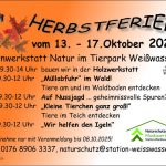 Da sind sie wieder, die begehrten Tagesangebote der „Lernwerkstatt Natur“ im Tierpark Weißwasser! Für junge Menschen von 8-18 Jahren. Die Teilnahme ist begrenzt und nur mit Voranmeldung bis 10.10.2024 unter naturschutz@station-weisswasser.de oder 0176 8906 3337 Weiterlesen…