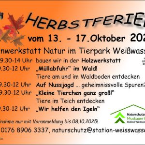 Projekt „Junge Naturforscher“ Das Projekt „Junge Naturforscher“ (JuNa) ist ein außerschulisches, praxisorientiertes sowie ... 25 Okt. 10:00 - 16:00 Lernwerkstatt NaturTierpark Weißwasser, Teichstraße 56, 02943 Weißwasser